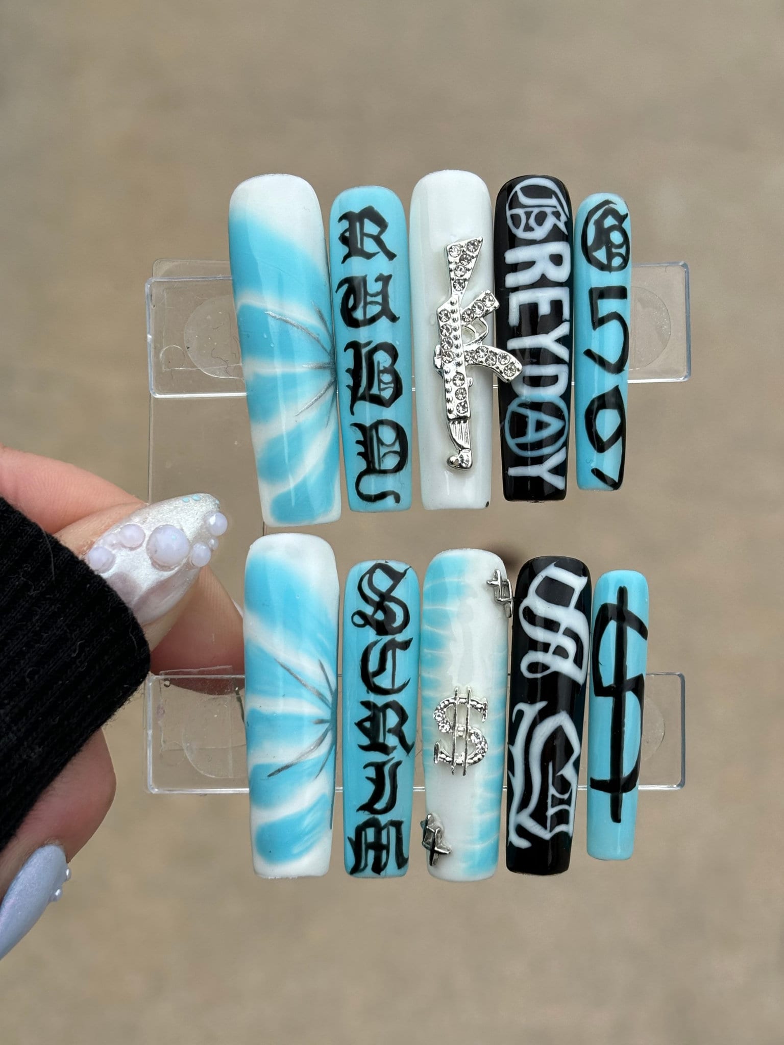 With proper prep, my press-ons can last 1–3 weeks! Instructions for prep, application, and aftercare will be included in your order. Take care of them, and you’ll be able to reuse your set multiple times!