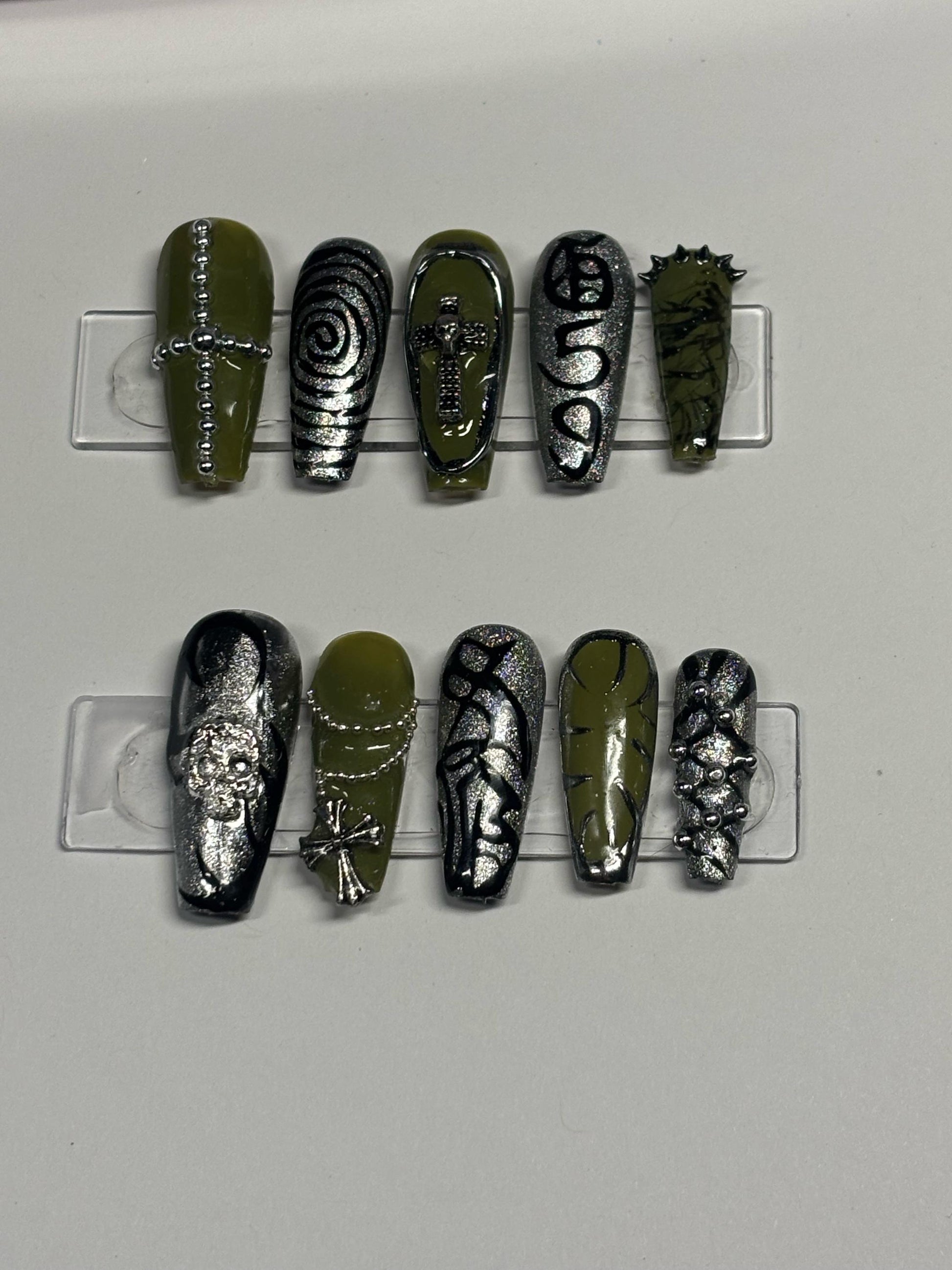 With proper prep, my press-ons can last 1–3 weeks! Instructions for prep, application, and aftercare will be included in your order. Take care of them, and you’ll be able to reuse your set multiple times!